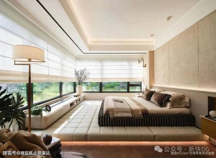 建面约122㎡户型更以约22㎡的环屋落地飘窗,落地式结构的设计革命,让传统户型中原本固定的下方窗台空间,扩展为可定制的弹性生活空间。主卧飘窗既能扩展为晨光中的瑜伽平台,也能化身夜观星河的冥想角落。次卧飘窗既可以是孩子的温馨床榻,也能变为童趣学习成长空间。