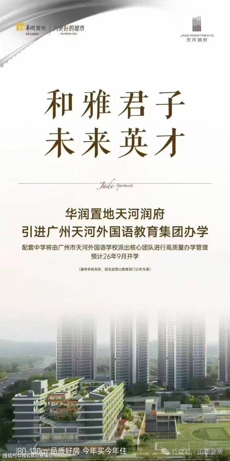 项目的第一个卖点是教育,就在本月初,华润置地天河润府配套的36班初中正式引进天河外国语教育集团办学。目前已经封顶,预计于2026年9月正式开学!