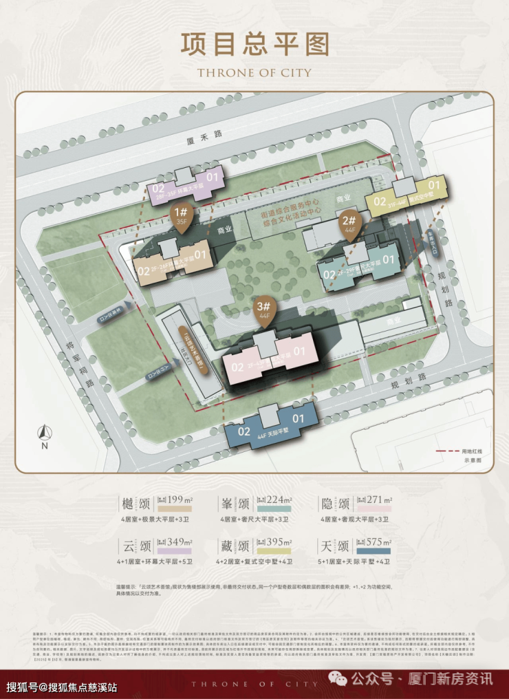 核心定位:厦门首个“第四代立体生态豪宅”,主打199-575㎡大平层及复式产品,定位高端改善型住宅。
