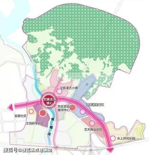 中央文旅区以槟榔河文旅度假区为核心,一体化整合爱上山三大小镇及丝路欢乐世界、红色娘子军演艺公园等七大板块,形成“居住+文旅+娱乐+商业+民俗”的全链条文旅闭环,实现一站式文旅体验。