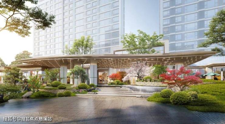 主入口处精心打造奢华门庭,融合现代材质与东方意境,流线型顶棚如云卷云舒,营造仪式感;青石铺地、迎宾绿植,一步一景,礼序归家。这不是一个简单的入口,而是一场关于生活美学的启程。