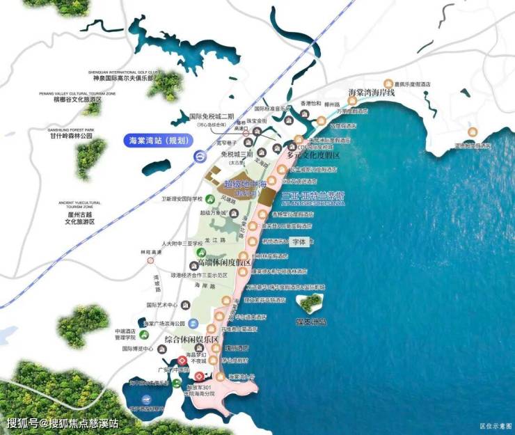 ◎通达交通属性——距离海岸线约 2 公里,距离海南环岛高速路约 4 公里,通往高铁站及机场都十分便利,未来还规划了海棠湾高铁站,建成后出行更加便利。