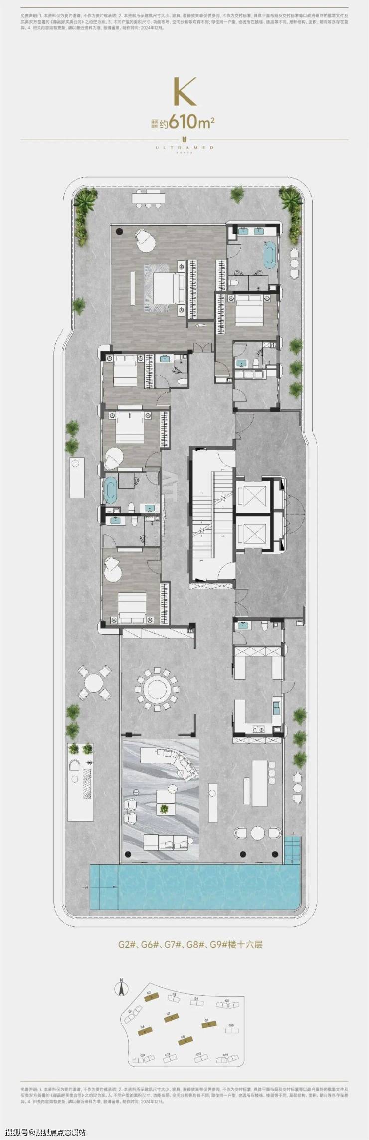 70年住宅产权,建筑面积约188-610㎡全系大户型配置,远高于同类产品,标定塔尖圈层聚首于此。