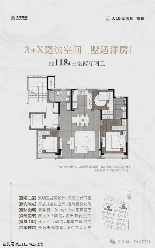 ✔C户型145平中叠、★9.5米客厅开间