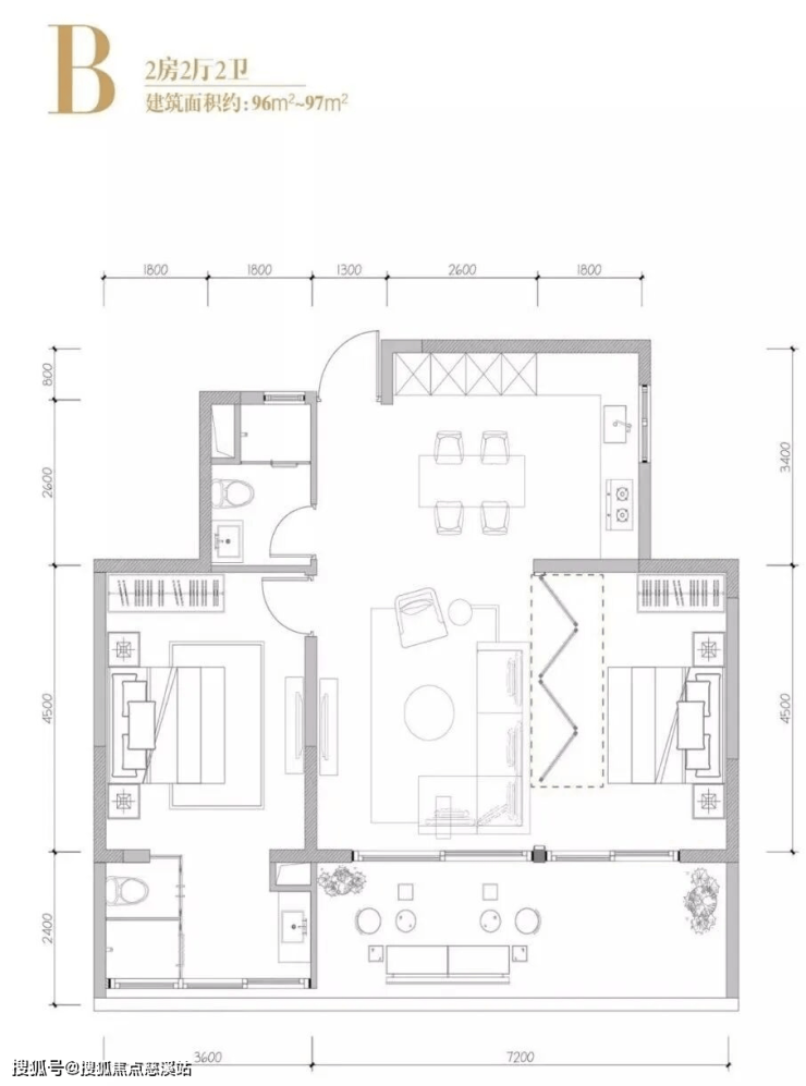 在售户型:95㎡ 两房两厅两卫