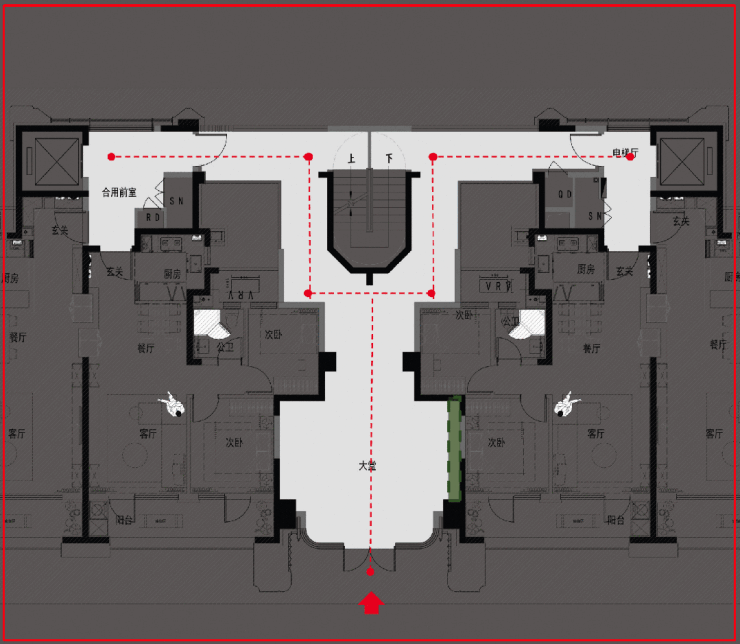 再如小高层的首层入户大堂,传统设计中通常采取从两侧进入的方式。