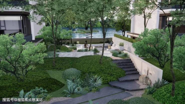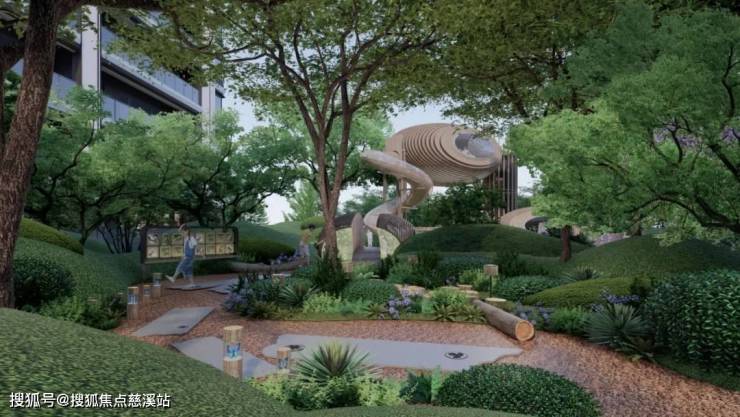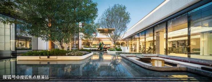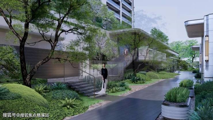 •最高8米台地立体园林,600㎡下沉水庭满铺亚马逊绿奢石(华北首例),融入莫奈、梵高等艺术元素,形成“漂浮森态岛屿”