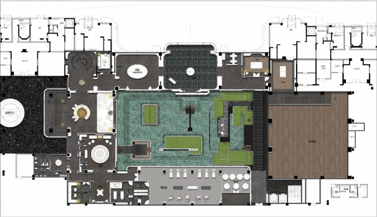 围绕着中央下沉庭院,金茂预设了12个功能区。除了常见的健身房、瑜伽室、棋牌室、水吧会客区、茶室,还有私宴厅、观影室、SPA房、台球室、乒乓球房,甚至篮球馆。