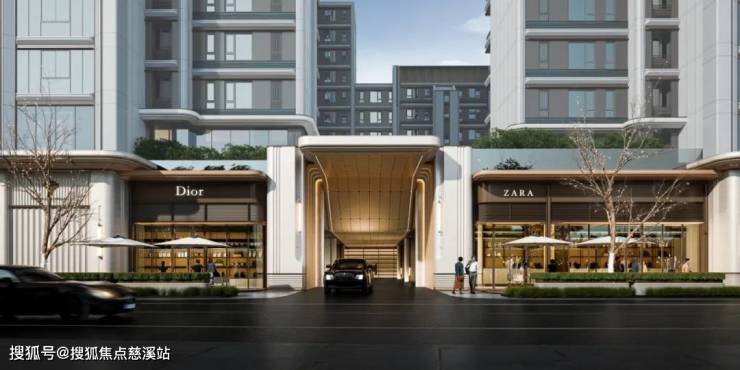 约216米长的海派艺术商街,以及汲取华尔道夫酒店理念打造的超级归家界面。社区主入口宽66米、高9米,贝金米黄石材与普拉达绿奢石拼接,复刻艺术经典的厚重感;