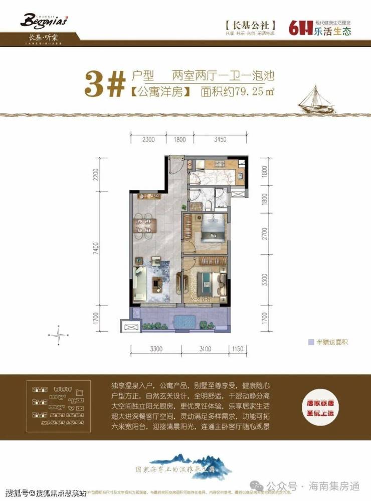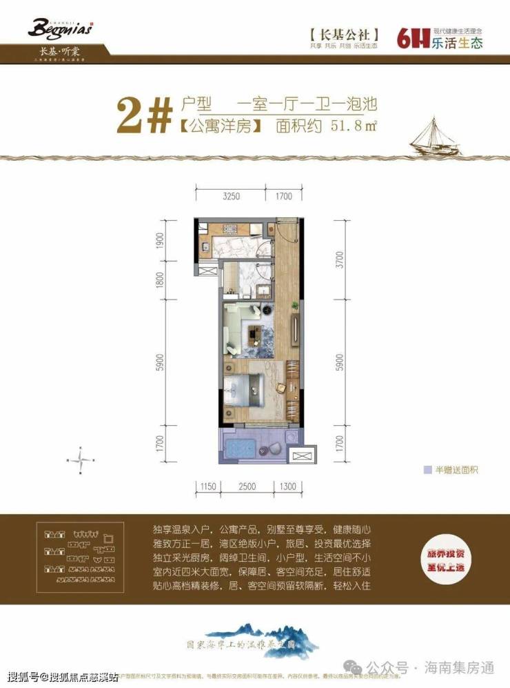 三亚长基听棠坐落于海棠湾南田温泉度假区,总占地约32606㎡,总建筑面积约5万多平米,绿化率40%,小区内丰富娱乐配套,家家享受温泉入户,背山面海适合度假养老居住。