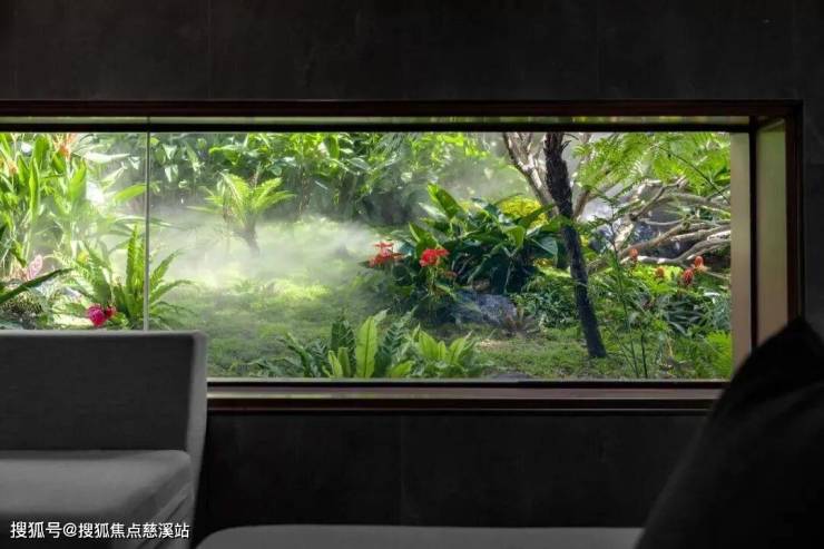 坐在休息区,看窗外的植物小景如画卷般展开,室内室外在自然和艺术中流淌,互相融通,扑面而来的雨林气息沁人心脾。