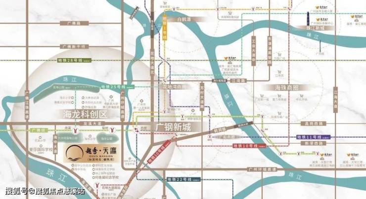 自驾:越秀·天瀛前面海龙路接驳各条高速,东接广州环城高速,西接广佛江珠高速,南接广台高速,距离荔湾核心聚龙湾约9公里,距离琶洲20公里,距离珠江新城20公里。