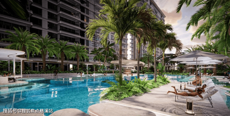 项目私属园林:“滨海国际风”园林设计,种植椰子树、棕榈、三角梅等热带植被,规划中央景观轴、亲水平台、儿童沙池、健身步道,融入“海浪景墙”“椰壳雕塑”等元素,营造“家在海畔”的度假感。