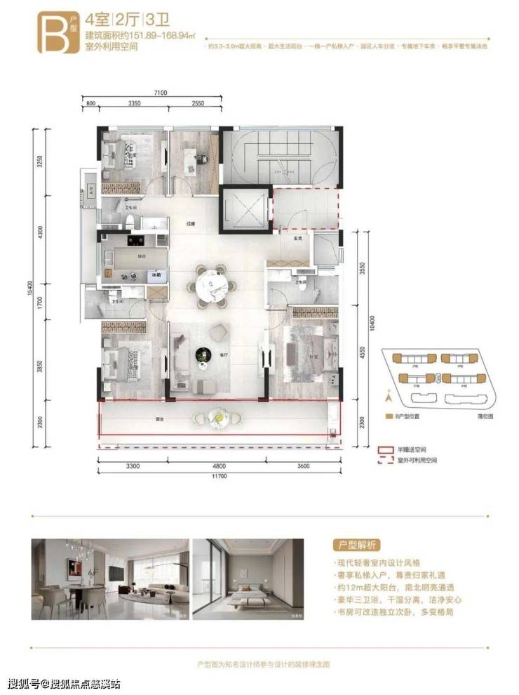 平墅:约109—169㎡ 一梯一户,康养平墅