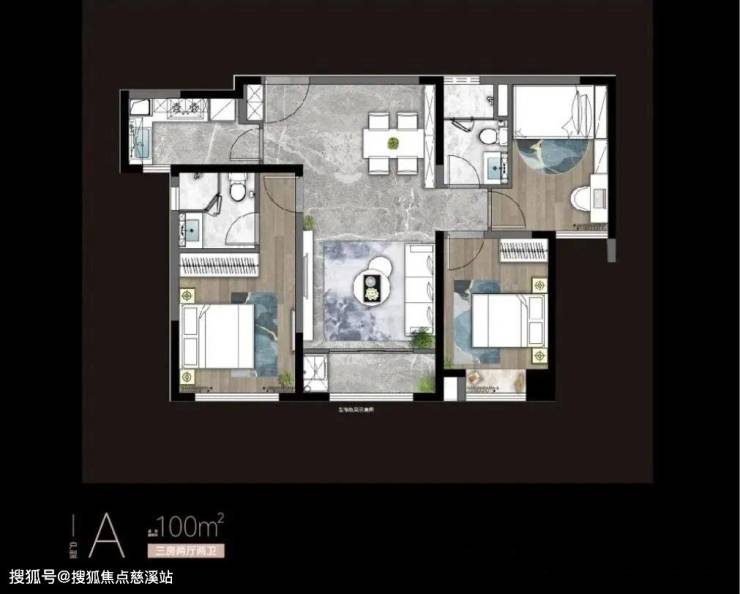 100㎡户型3室2厅1卫