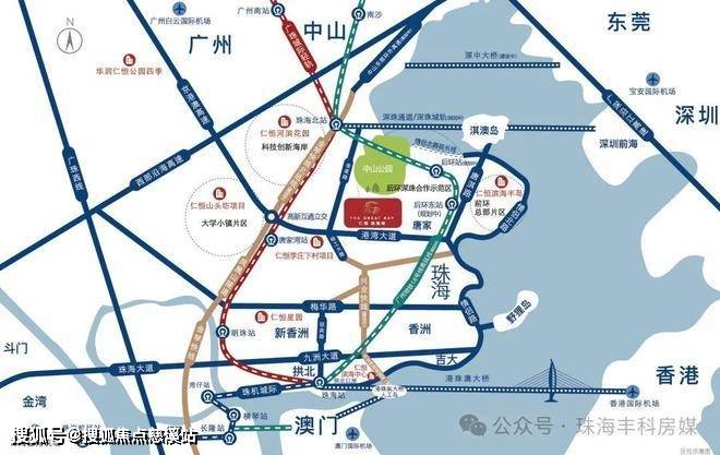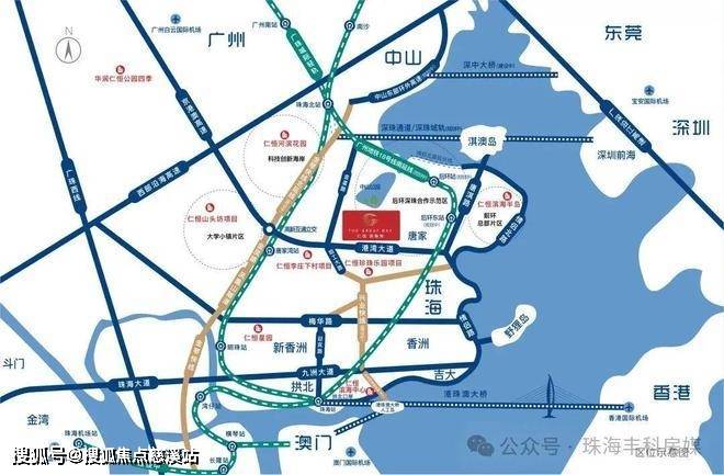 项目地处大湾区西岸桥头堡、深珠门户区,距离深珠通道的西岸落脚点仅1.5KM。通过广珠轻轨、深珠通道(规划中)等交通,打造粤港澳交通闭环,实现广深珠一小时生活圈。