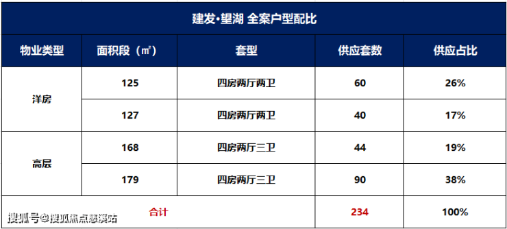 建发望湖项目共规划6栋住宅楼,其中3栋高层、3栋洋房,高层住宅134套,洋房住宅100套,合计234套。