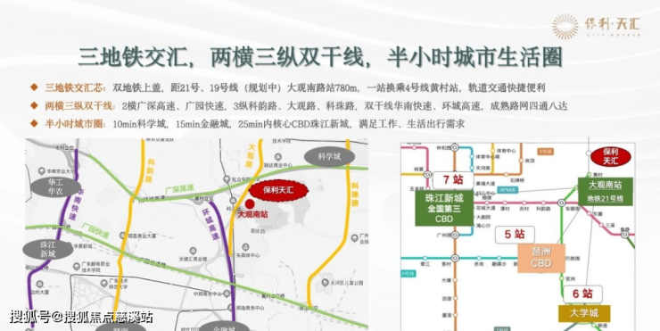 项目位于广州市天河区大观中路120号,广州地铁21号线大观南路站附近;坐落于广州黄金发展轴-第三中轴线的天河智慧城板块-天河智谷片区,作为广深科技创新走廊重要科创与文创节点,将建设为集“产、学、研、商、居”于一体的新一代信息技术于文化创意价值创新园。