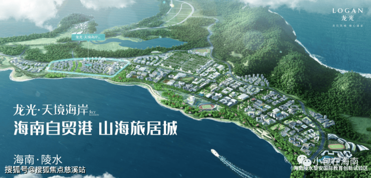 龙光集团,首进黎安国际教育创新试验区,匠筑389亩山海旅居城,一期规划11栋高层住宅和28栋多层住宅,打造2梯2户海景高层、全系多层住宅产品,丰茂山海肌理,焕新海岛旅居体验。