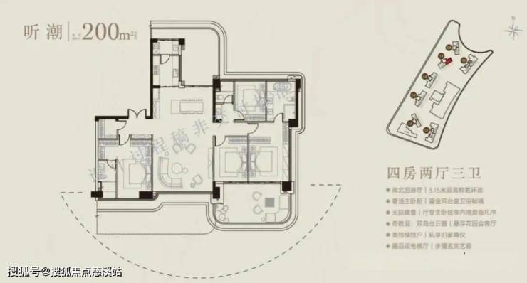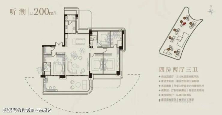 •主推建面约188-436㎡的四代私定大宅,户户带空中花园,综合使用率近100%,最大环幕视野达到270°;其中191㎡户型为四房两厅三卫,有端厅设计,奇数层客厅带露台,偶数层南向露台连接主卧与次卧;436㎡户型为五套间设计,三梯两户,每个房间都能瞰海;