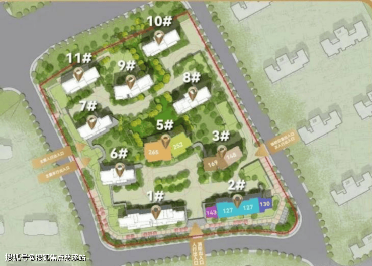 社区南侧和西侧临路位置主要布置127-143㎡户型。