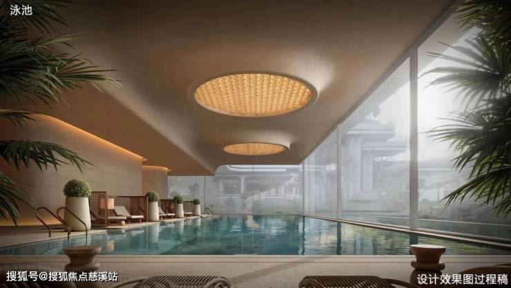 外立面为米白色石材与深灰色铝板搭配,社区配备下沉式会所、无边际泳池等高端设施。
