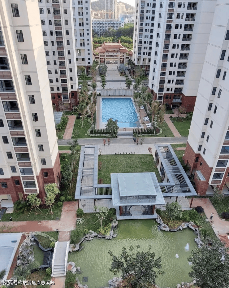 配套设施完善,包括泳池、花园、篮球场、健身器械、象棋亭等,绿化和造景用心,营造出公园式居住氛围。
