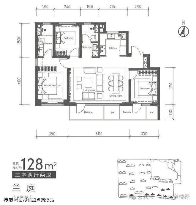 128平三室两厅两卫