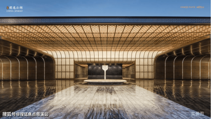帝王以金昭礼序,以璞彰权柄; 建筑取青铜古韵,琢玉显尊贵。金茂璞逸云湖以「金镶玉带」的立面叙事串联中原文明千年脉络,建筑立面取色青铜鼎的斑驳古金,露台玻璃下方镶嵌绿石玉带,重现东方文明中“金玉相生”的珍贵意象。