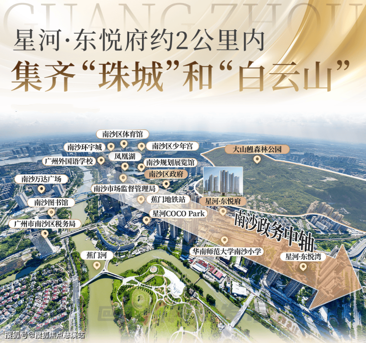 南沙区政府、三馆一宫、南沙中心医院、南沙外国语学、蕉门地铁站等,半数以上的高端市政和配套资源都汇聚于此。