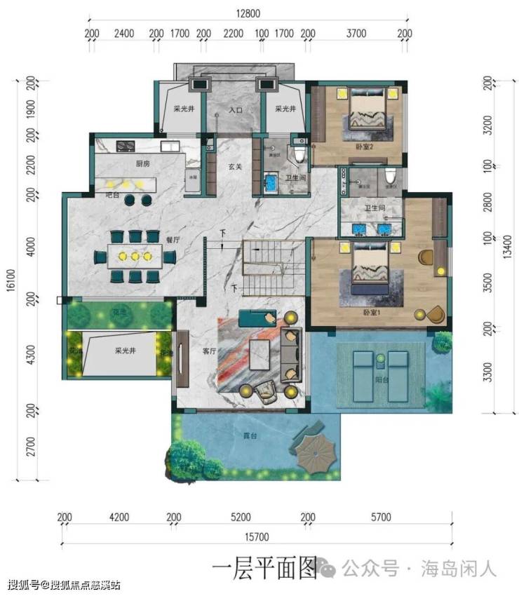 总层高:4层一层和负一层,一梯两户,带花园(286㎡-320㎡)