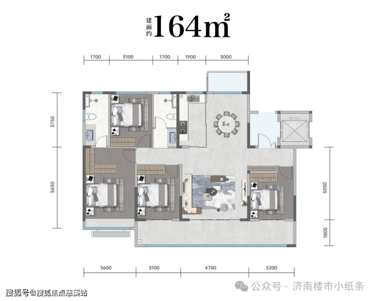 ·南向三卧:三卧室朝南,双卧大飘窗,格局通透向阳而生