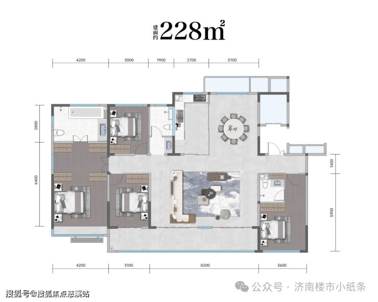 约55万㎡5-8层纯洋房住区,面积约为129-228㎡,划界济南奢居时代