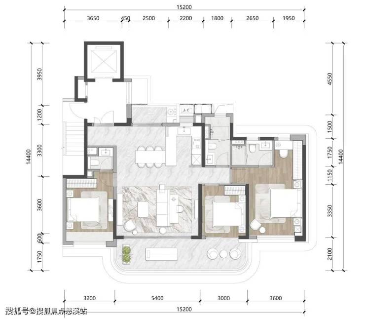 即使是最小的105㎡户型,也充分体现了设计师对度假豪宅家庭关系场的把握。搜建筑