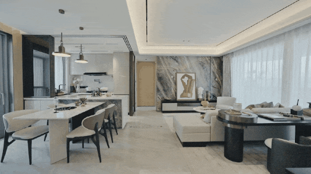 203㎡户型21.5 m长的270°全景阳台,让住户不被时间、空间束缚,在家就能享受三亚的瑰丽山海,这才算是回归了度假的本质。让所有设计回归到原点,设计人的生活方式,把人内心的精神连接到自然场景中。