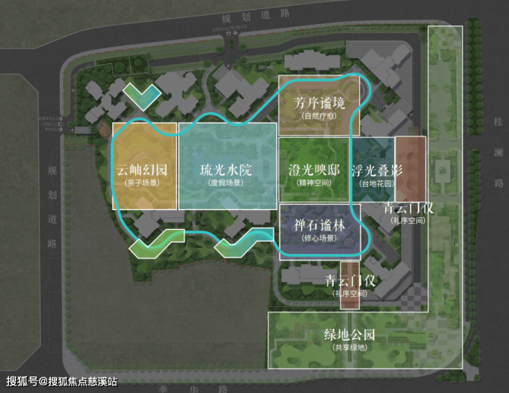 项目通过大围合式建筑布局,释放出约5.3万㎡景观大园林,以“云岫幻园、禅石谧林、澄光映邸、芳序谧境”等四大主题景观系统,融汇儿童游乐、健身社交、度假会客等多重功能,在城市中心营造出一处可游可赏的“微度假场景”。