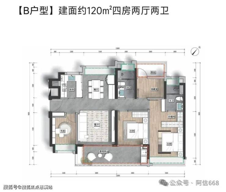 2、120平米四房两卫
