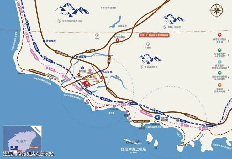 项目地处大三亚1小时旅游经济圈,周边拥有丰富的旅游资源:尖峰岭国家热带森林公园、乐东旅游三湾(龙栖湾滨海旅游度假区、龙腾湾滨海旅游度假区、龙沐湾滨海旅游度假区)、中国南方最大的莺歌海盐场、天涯海角、大小洞天、南山寺等,覆盖范围:车程35分钟。