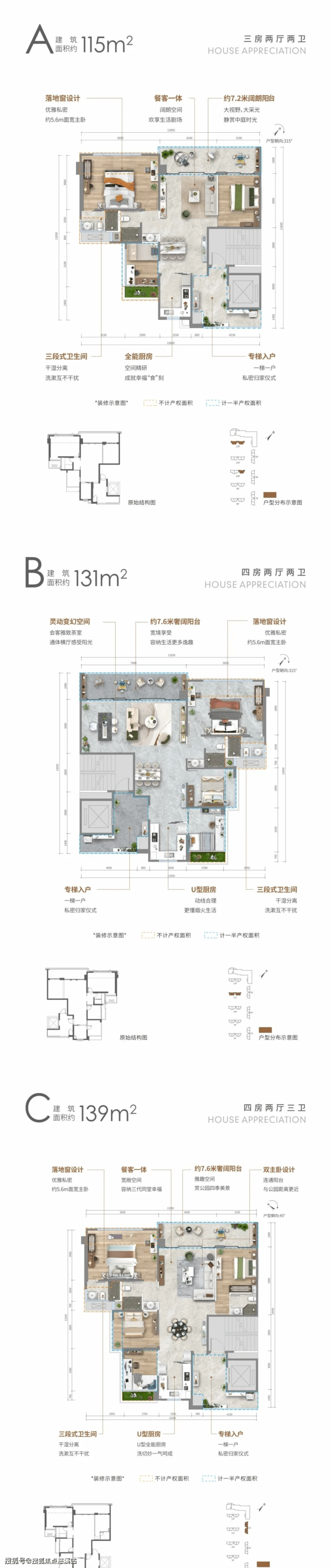 建筑面积约115-139㎡纯板住宅