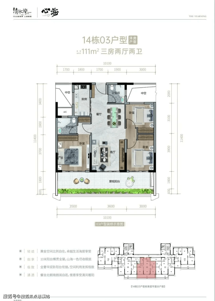 区位优越:位于清水湾核心地段,近海却不临海,既能享受海滩资源,又能远离喧嚣,同时依托游艇会滨海商业、瀚海银滩美食街等三大核心商圈,生活便捷。