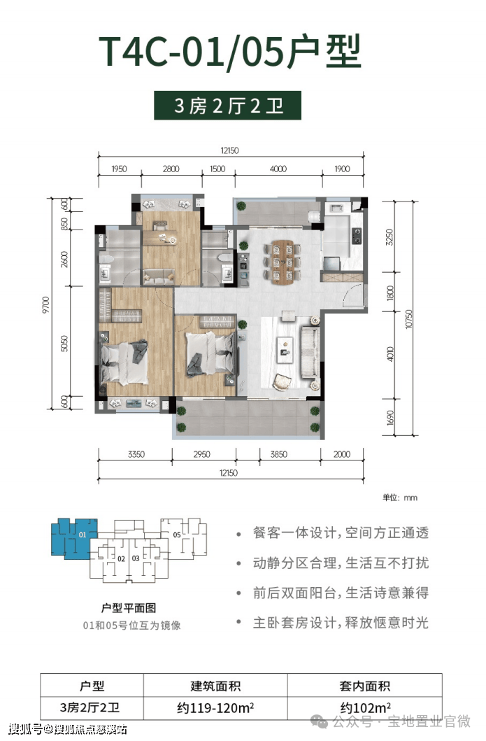 全明户型,方正实用、公摊低,大主卧、超大景观阳台设计