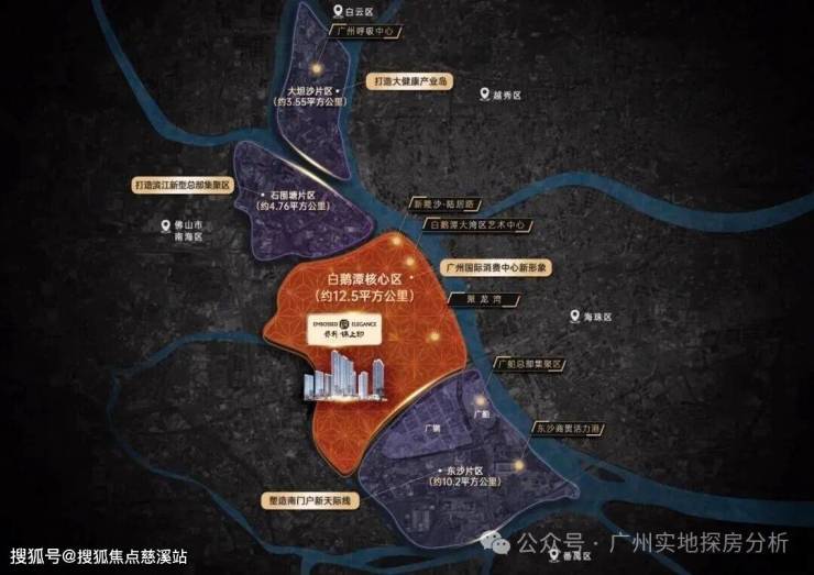 项目位于荔湾白鹅潭CBD核芯区,严格来讲属于花地湾板块,市区少有的纯板楼设计。