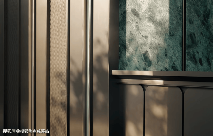 归家第一眼,即是显赫门庭。台阶由黑金沙整石铺就,取南洋骑楼拱券的绰约风姿,奢立「七拱门廊」,点缀宝格丽绿奢石、方胜纹、几何天花。当2.4吨铜门缓缓开启,如同打开一部厦门家族史诗。