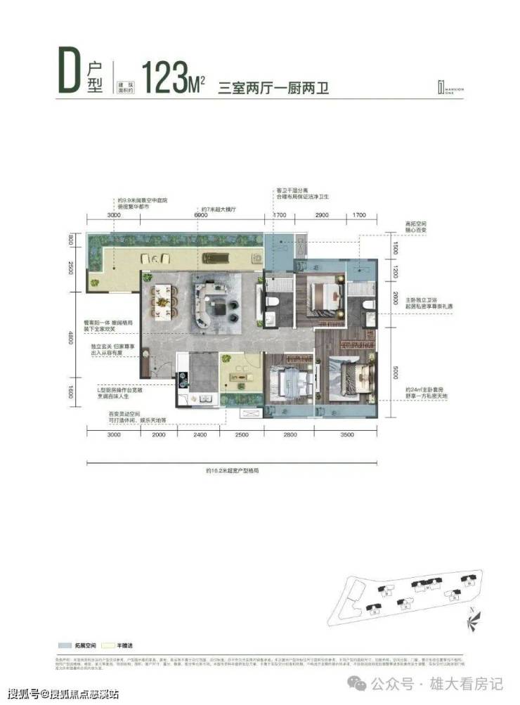 🏠: 123㎡ 3+2房