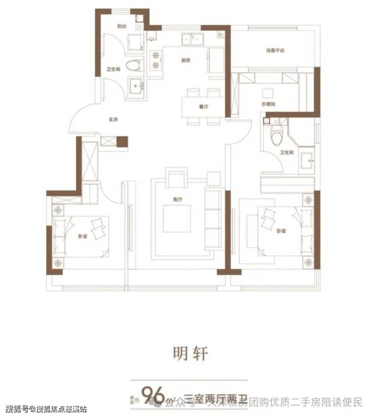 全产品三室双卫户型,经典大面宽、短进深布局,优化采光与通风