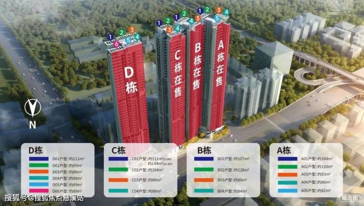 A栋产品:约82-120㎡三房至四房,三梯五户