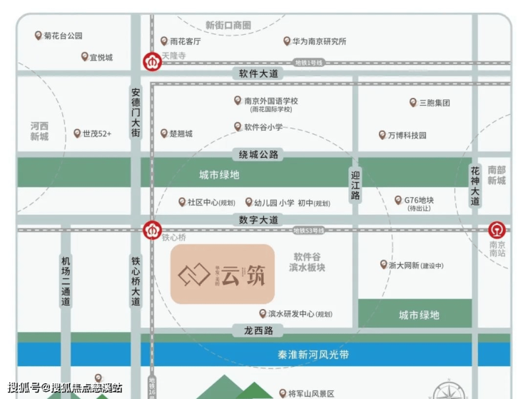 项目地址:位于软件谷,北邻数字大道,南邻秦淮新河,东临迎江路,西临凤翔翠园。