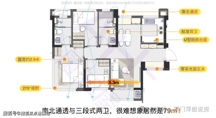 63㎡的户型,它其实是“单身主义”的理想之居,客厅可以做到5.3米面宽的大宽厅,主卧的尺度感也是这个面积前所未有的。这个户型套数很少,估计都不够卖。
