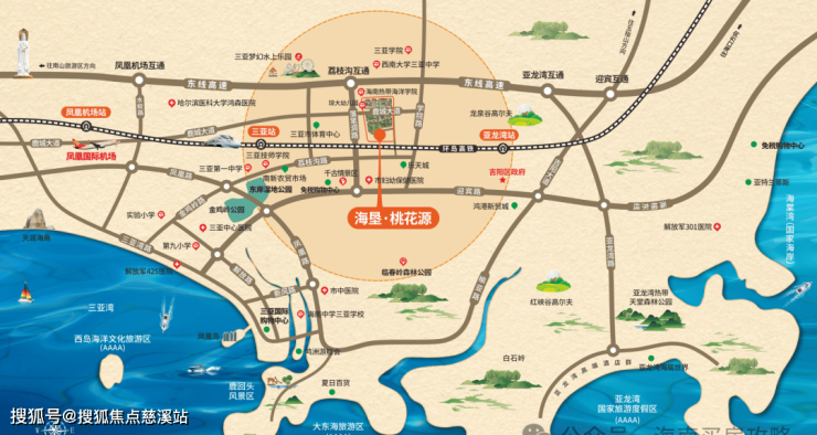 海垦・桃花源坐落于三亚市吉阳区荔枝沟落笔洞路38号,处于落笔洞路、鹿城大道两大城市主干道的交汇处 。这一黄金地段赋予了项目卓越的交通优势,距环岛高速荔枝沟互通仅约800米,无论是驾车前往海南各市县,还是自驾出游,都能快速驶入高速路网,畅享便捷出行。前往三亚动车站约7公里,而三亚凤凰机场也不过约17公里,对于经常需要出差或者旅游的人士而言,轻松实现与国内外各地的无缝对接,立体交通路网,让您畅通全城乃至全球。