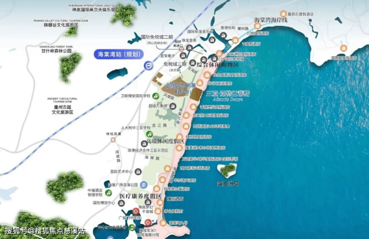 三亚海棠湾,拥有约22公里黄金海岸线,千亿级娱乐、休闲、康养、购物、教育等度假资源汇聚,是高端旅居、顶级度假生活目的地。